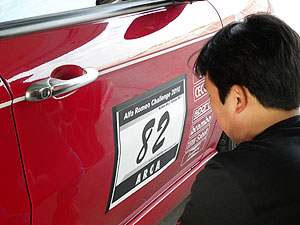 早速、レース走行前の準備。固定ゼッケン番号をとっておられるのでゼッケン貼りはなく、ラクラクです。