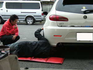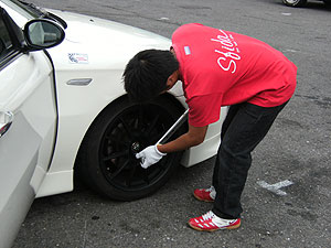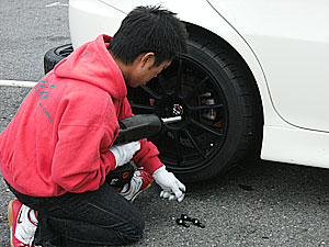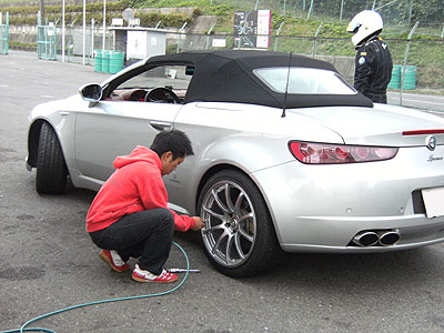 今回のタイムアタックに向けてフロントタイアを215から235/40-17に太さを変更。