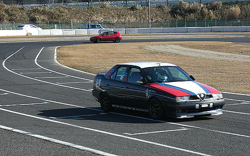 アルファロメオ3台その他、ポルシェ、日本車などさまざまな車約80台の参加です。
